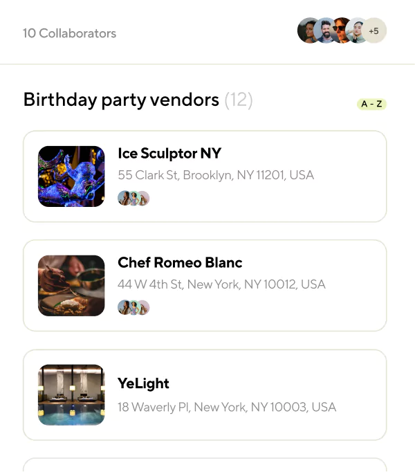 Black Book makes working together or in groups seamless. Embark on new projects and share resources while planning parties, events, projects and more using our special Collab feature.